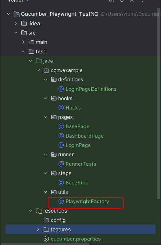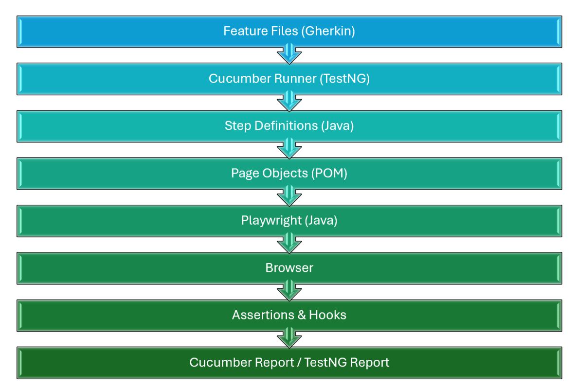 Playwright is integrated with Java, Cucumber, and TestNG. This integration creates a robust and scalable test automation framework for modern web applications. It is a BDD-driven framework.
