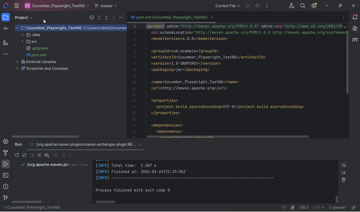 2.1 Add the Cucumber, Playwright Java, and TestNG dependencies