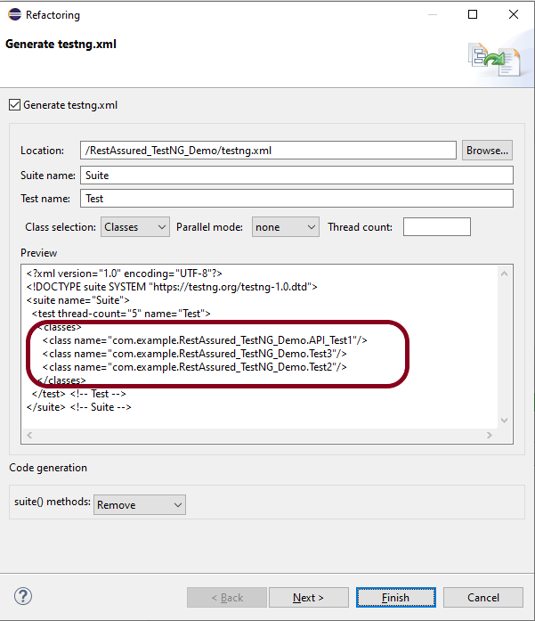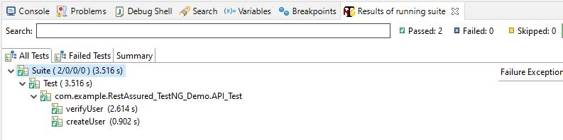 Right-click on testng.xml and select Run AS -> TestNG Suite. If you will run the Test Class – ParallelTestDemo.java as Right click and then Run As TestNG Tests, then the methods will run sequentially.