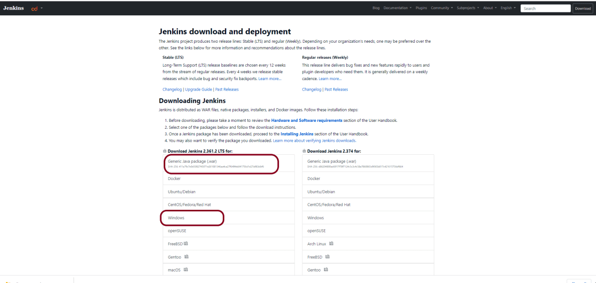 As we can see, Jenkins produces two releases, one is a stable release, and the other one is the regular bug fixes, which comes every week for all the operating system. I prefer to use the stable version.