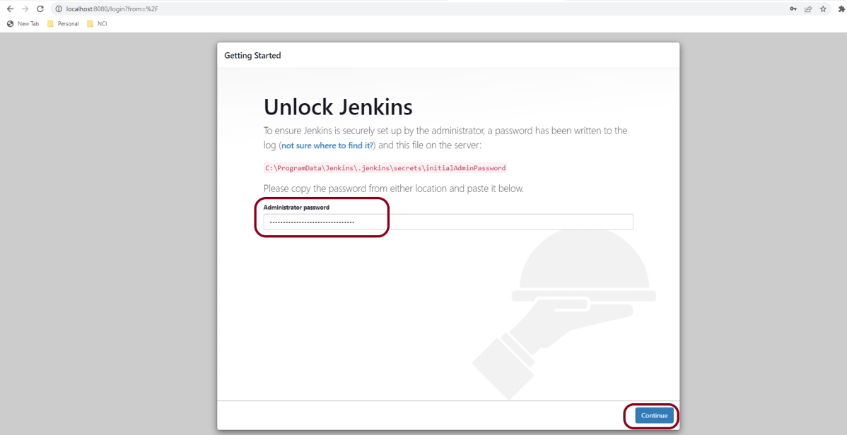Step 2 – Copy the content of the initialAdminPassword file and paste it into the Administrator password field. Then, click the Continue button.