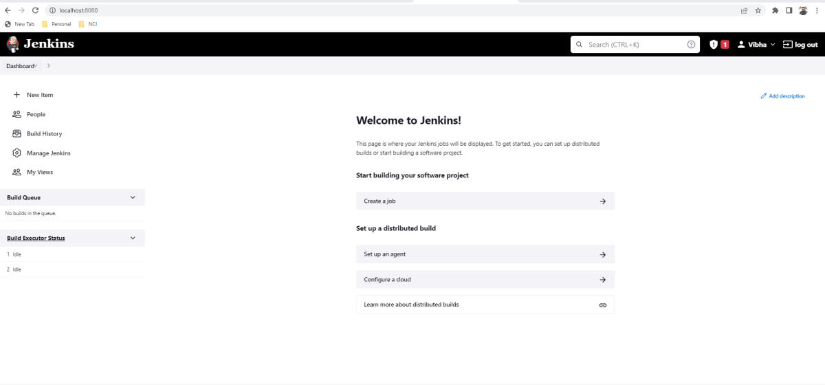 Step 8 – Finally, here is the default Jenkins page. Jenkins is now installed and running on Windows, and you are ready to start building your CI/CD pipeline.