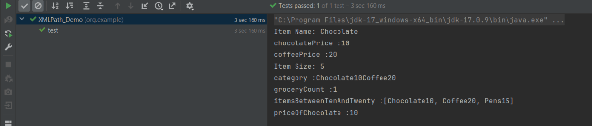 String chocolatePrice = xmlPath.get("shopping.category.item[0].price");